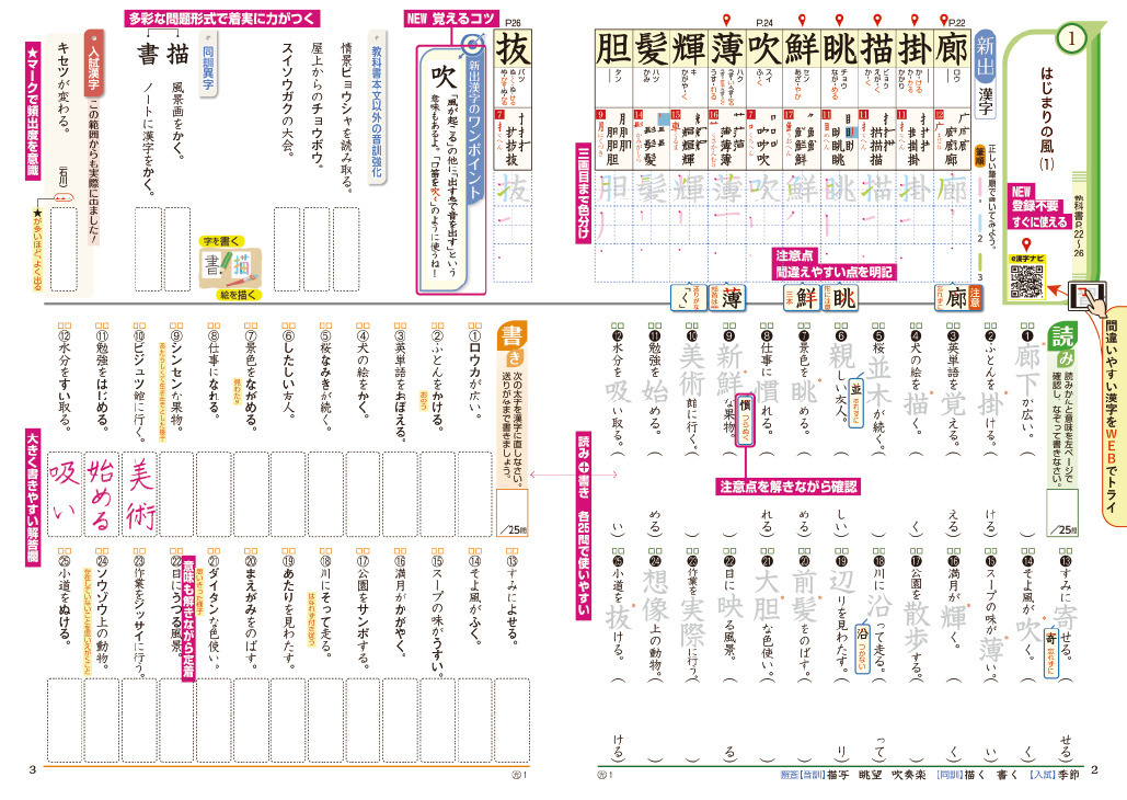 - 好評 新出漢字/重要漢字の注意点を表示。間違えやすいポイントを整理!