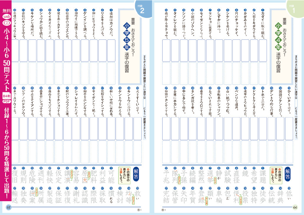 - NEW 本誌巻末付録小4~小6漢字からの範囲で出題!