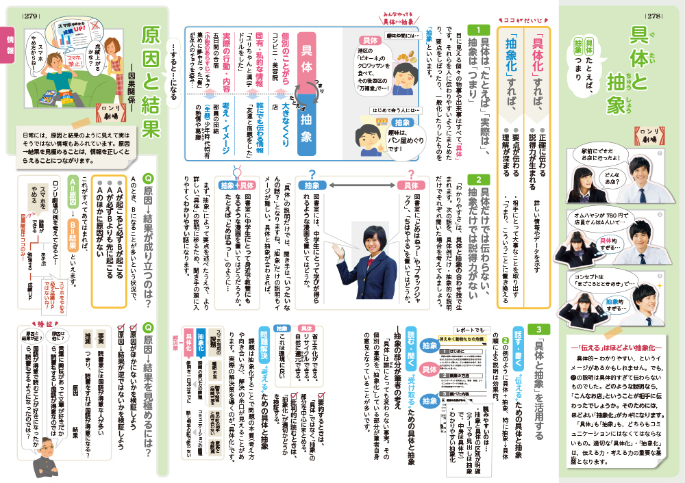 「比較・分類」「具体と抽象」「原因と結果」などの思考法(考え方)について、身近で具体的な事例を使って解説。