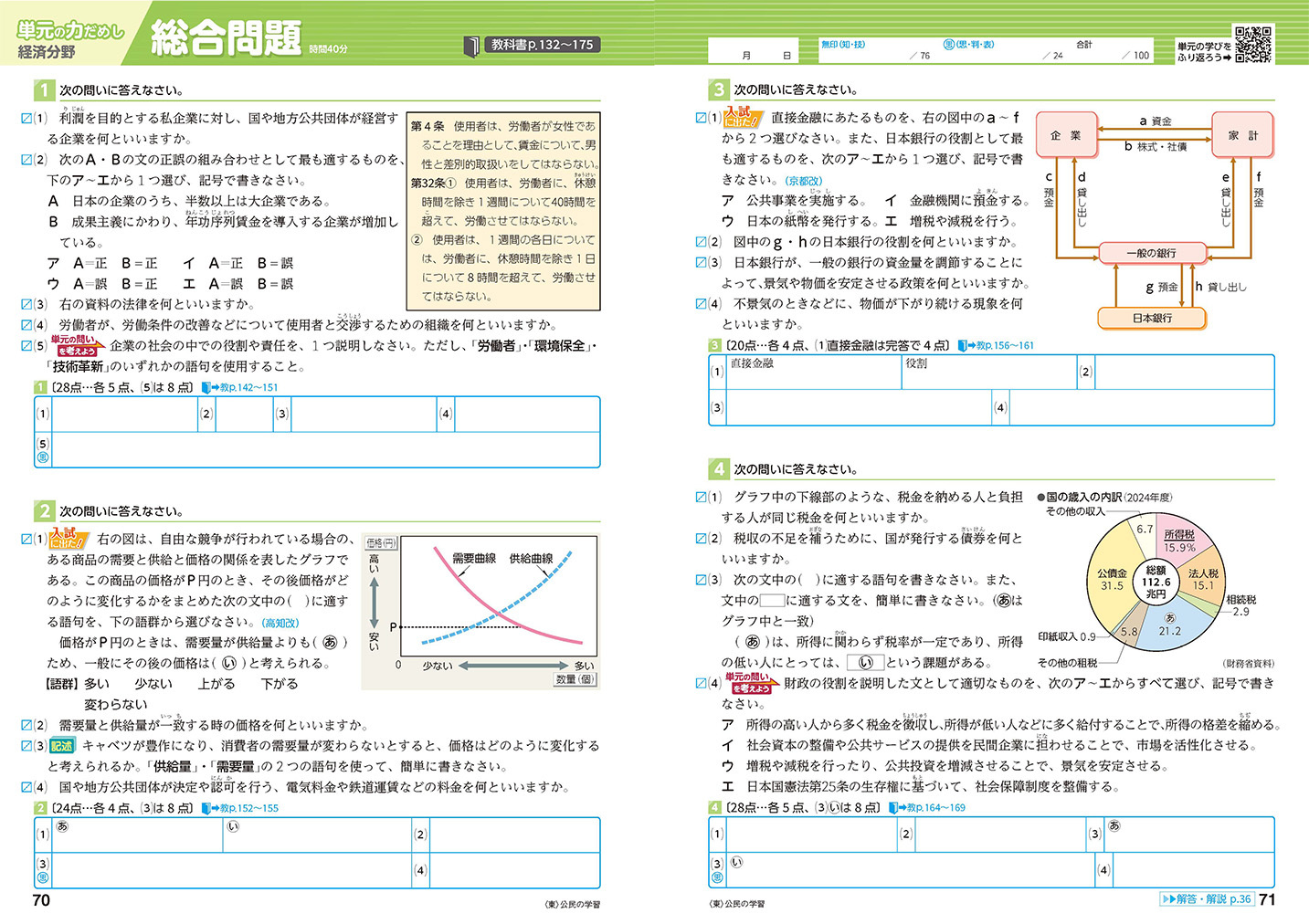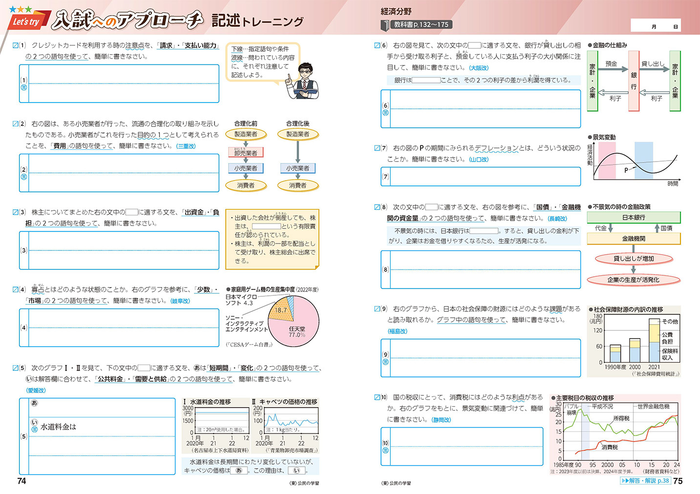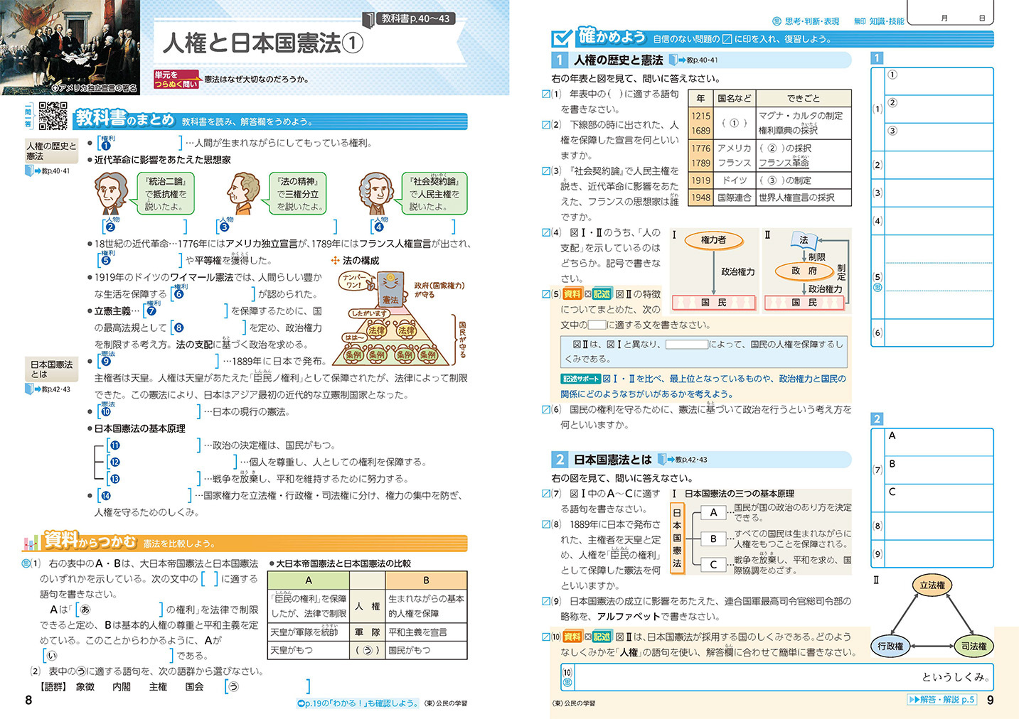 • 入試頻出の記述問題や、資料・憲法条文の穴埋め問題も