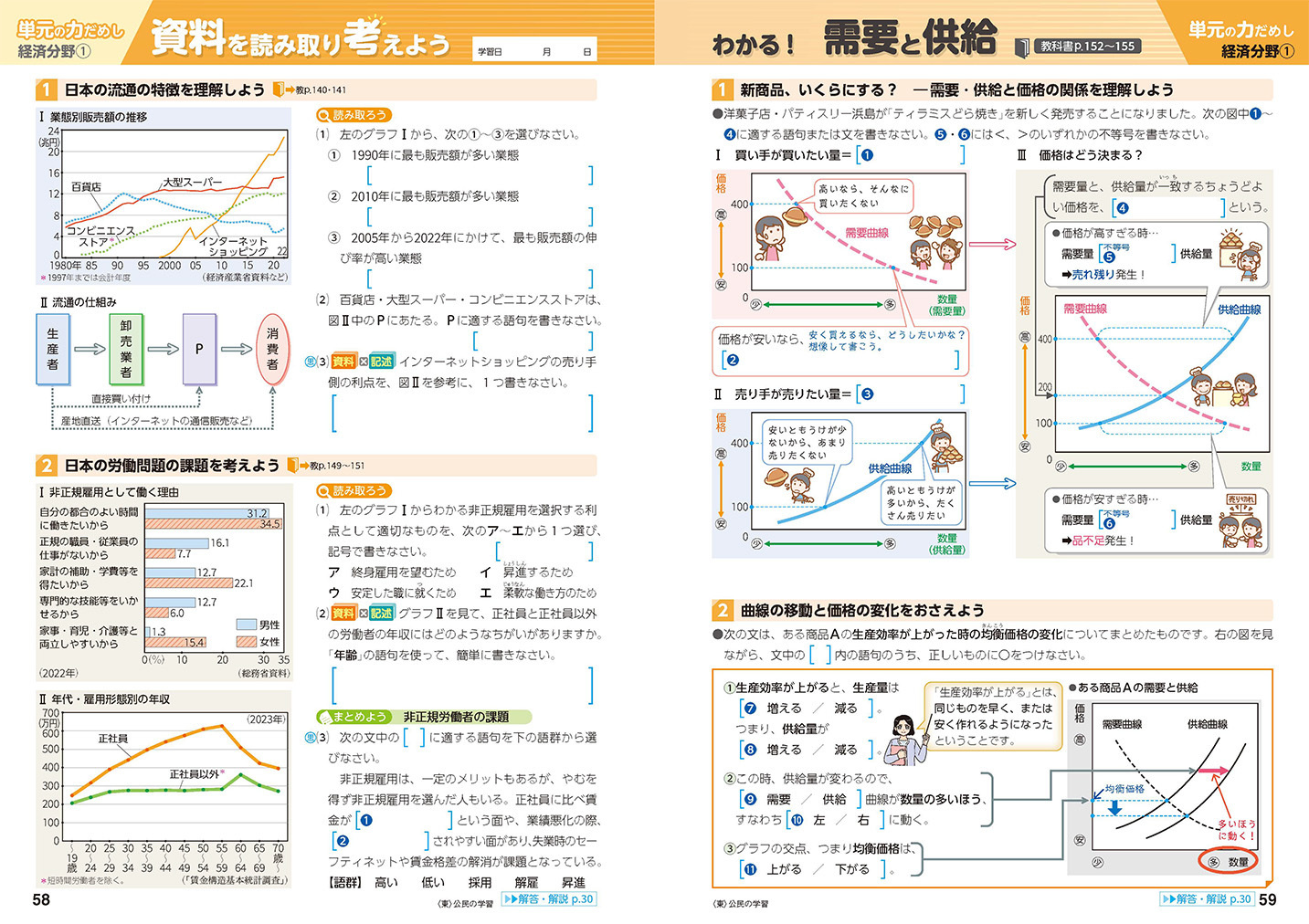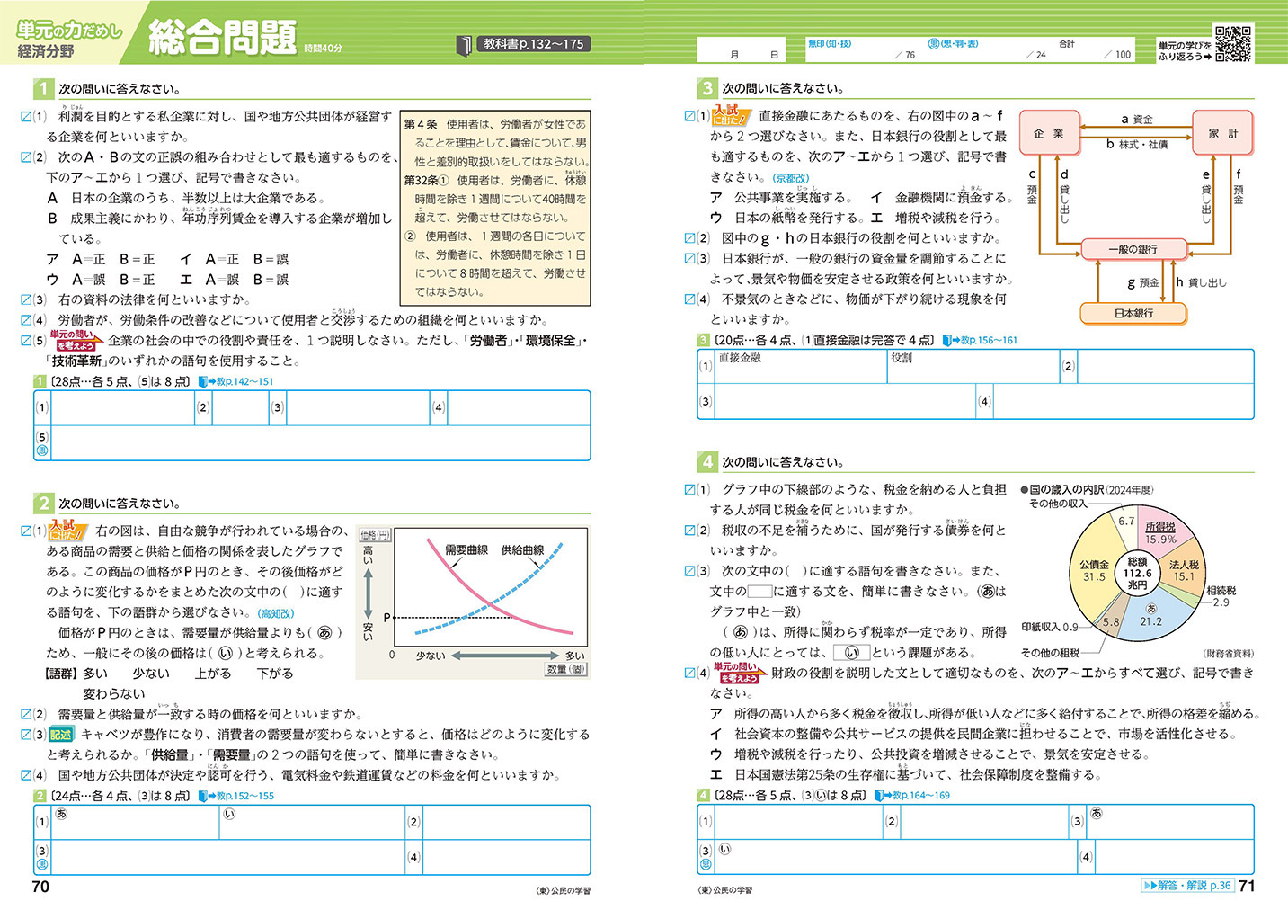 - 入試頻出の記述問題や、資料・憲法条文の穴埋め問題も