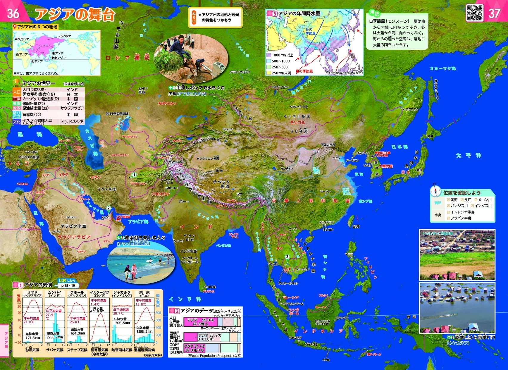 - 「地理Now!」…「インド、人口世界一」(p.48) など