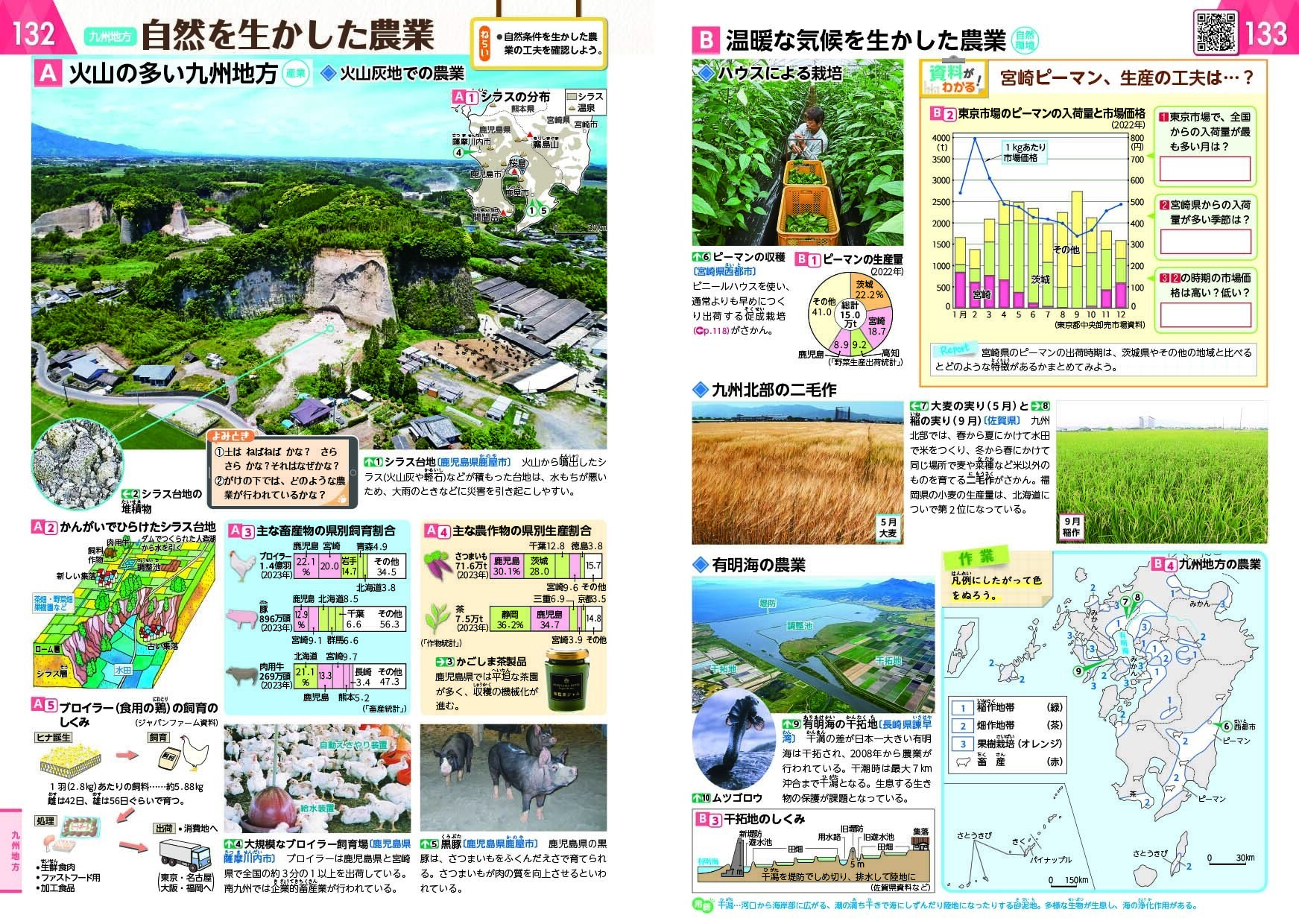 - 地図を読みとく発問・ノート欄で,学びが深まります。
