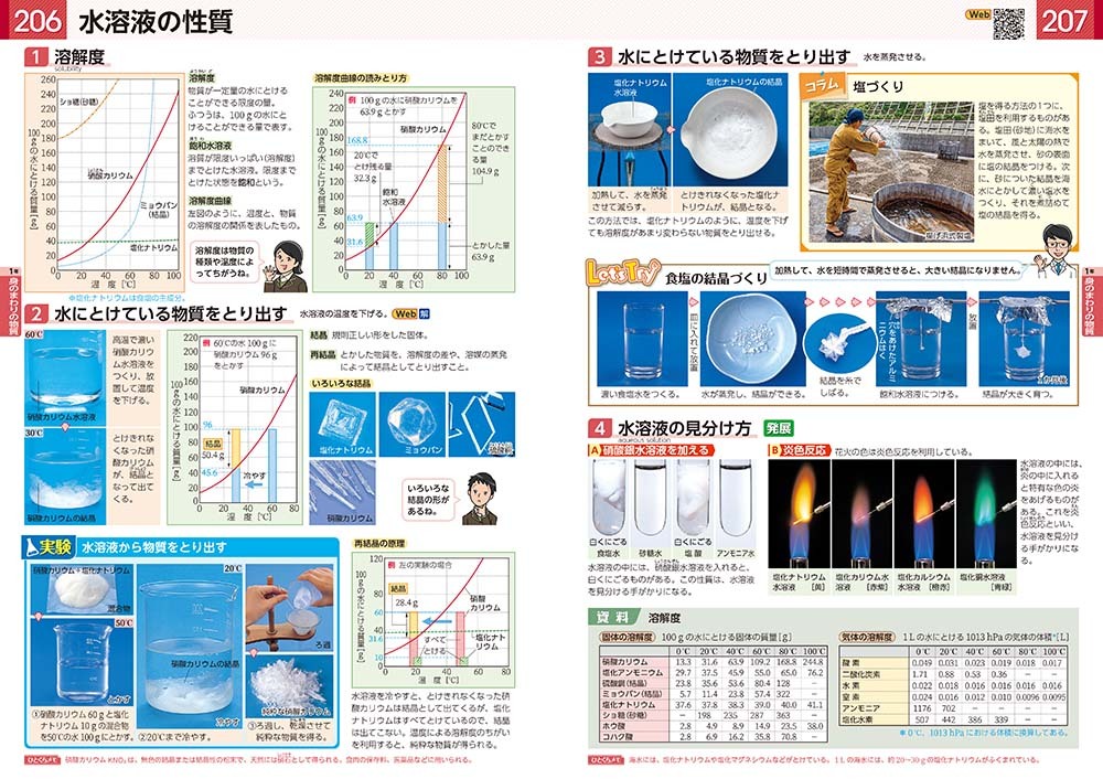 - 地震のゆれの伝わり方(p.85)、飽和水蒸気量(p.115)、凸レンズの像(p.165)、溶解度(p.207) など
