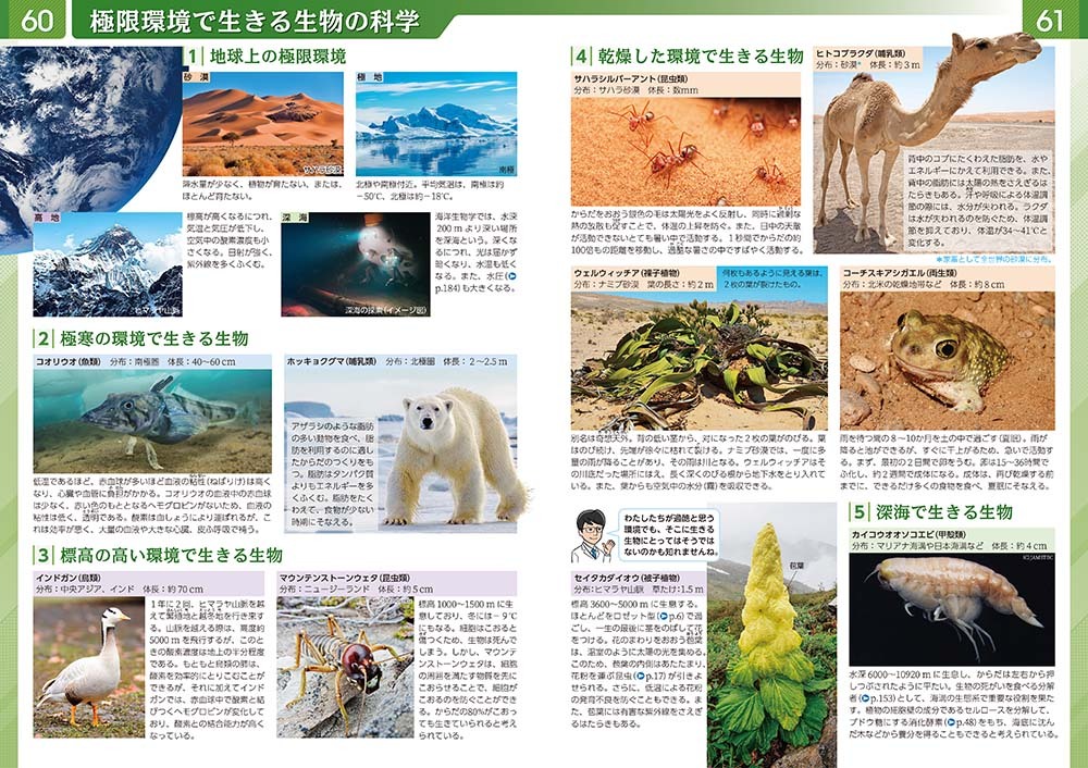 【NEW】 極限環境の生物(p.60)、遺伝子(p.72)、恐竜(p.80)、防災(p.126)、宇宙の歴史(p.142)、感染症(p.162)、熱(p.204)