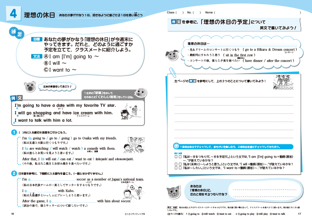 - 高校入試の 「自分の意見や考えを述べる英作文」の練習としても対応 できます。