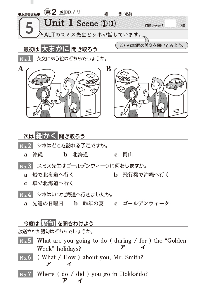 2回目 → 細かい大切な点を聞きとります。(質問応答の選択問題)