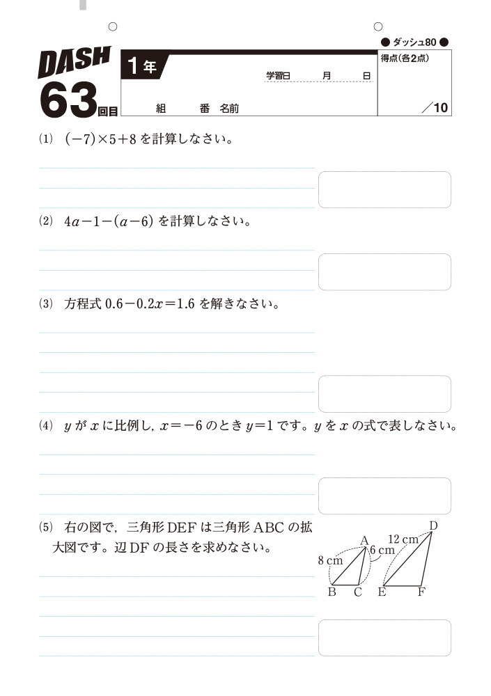 - 毎日5分間で,80回。基礎問題をくりかえし練習。