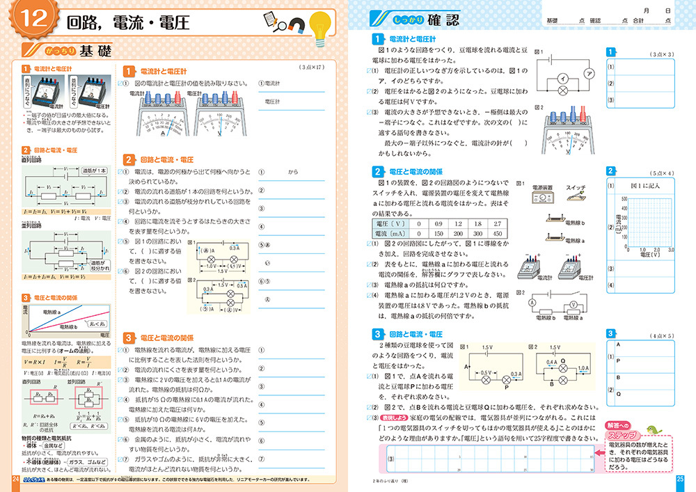- 基礎と確認で復習したあとに総まとめの問題にあたることで,知識の定着をはかります。