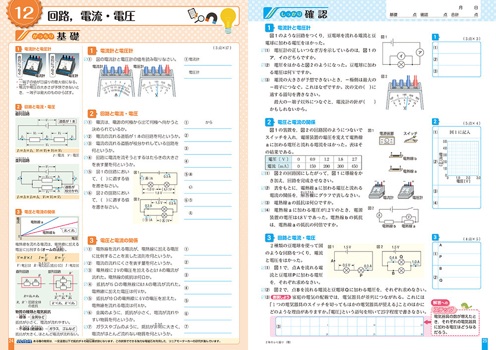 • 基礎確認で復習したあとに総まとめの問題にあたることで,知識の定着をはかります。