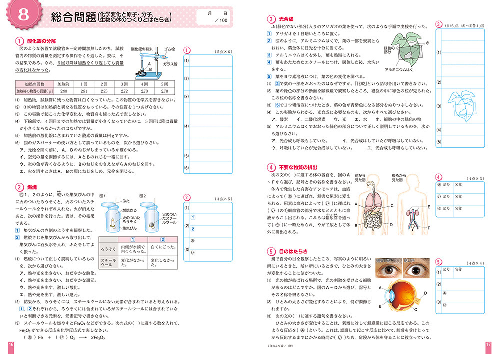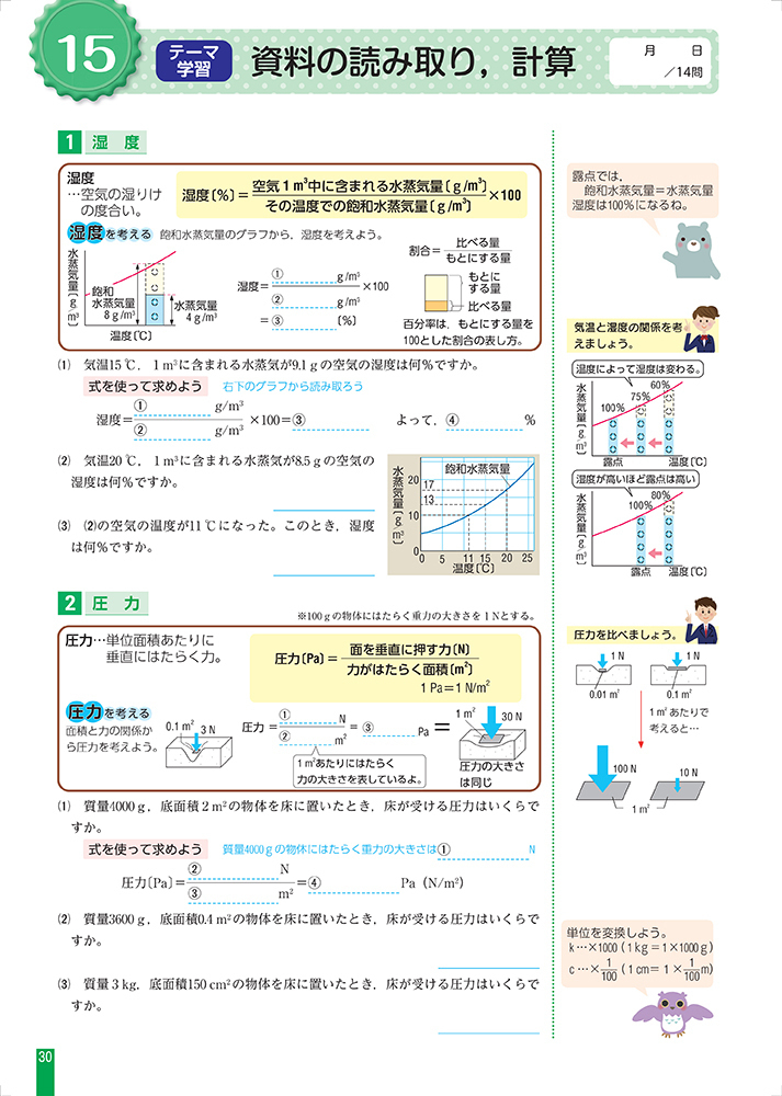 • 計算(圧力・オームの法則・電流のはたらき),資料(化学変化と物質の質量・湿度)