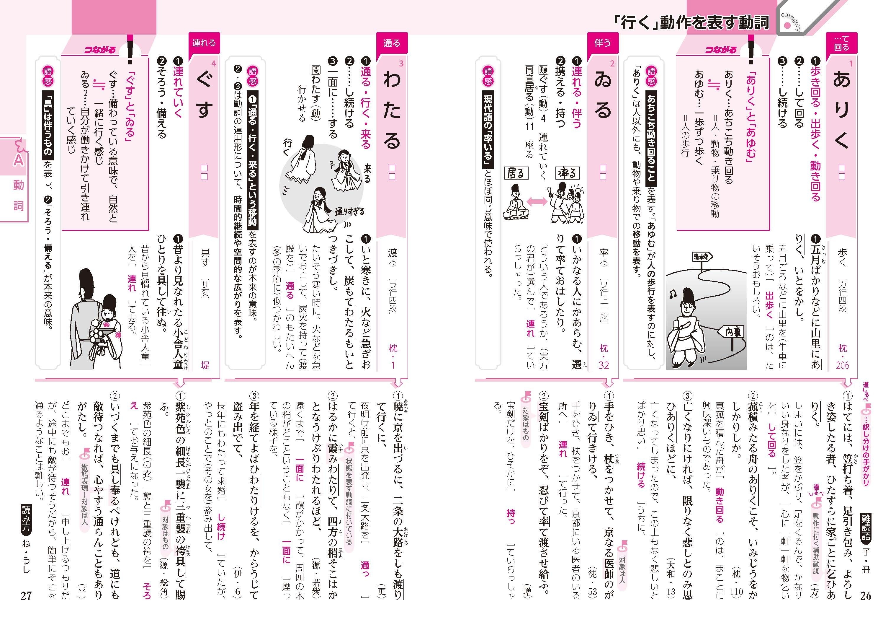 • 「評価を表す語」「身分の高低を表す語」など, 見開きでカテゴリ―分け