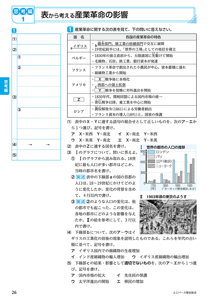 - 「着目点」「考え方」「採点基準」で資料読み取りの道筋がわかる「論述のてびき」