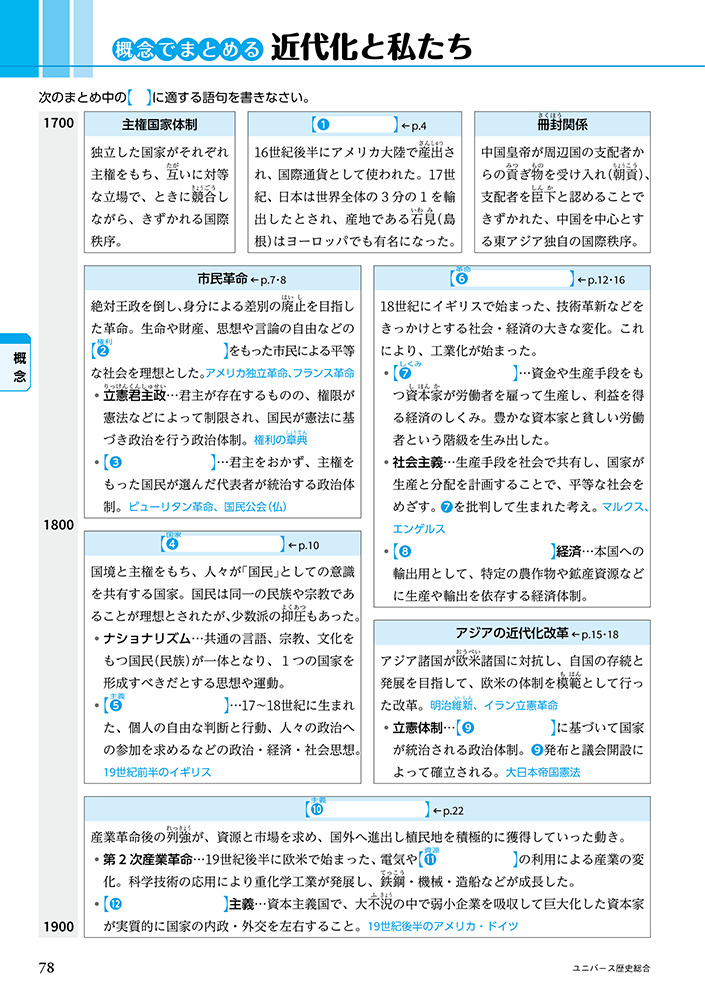 - 近代化・大衆化・グローバル化で各1見開き