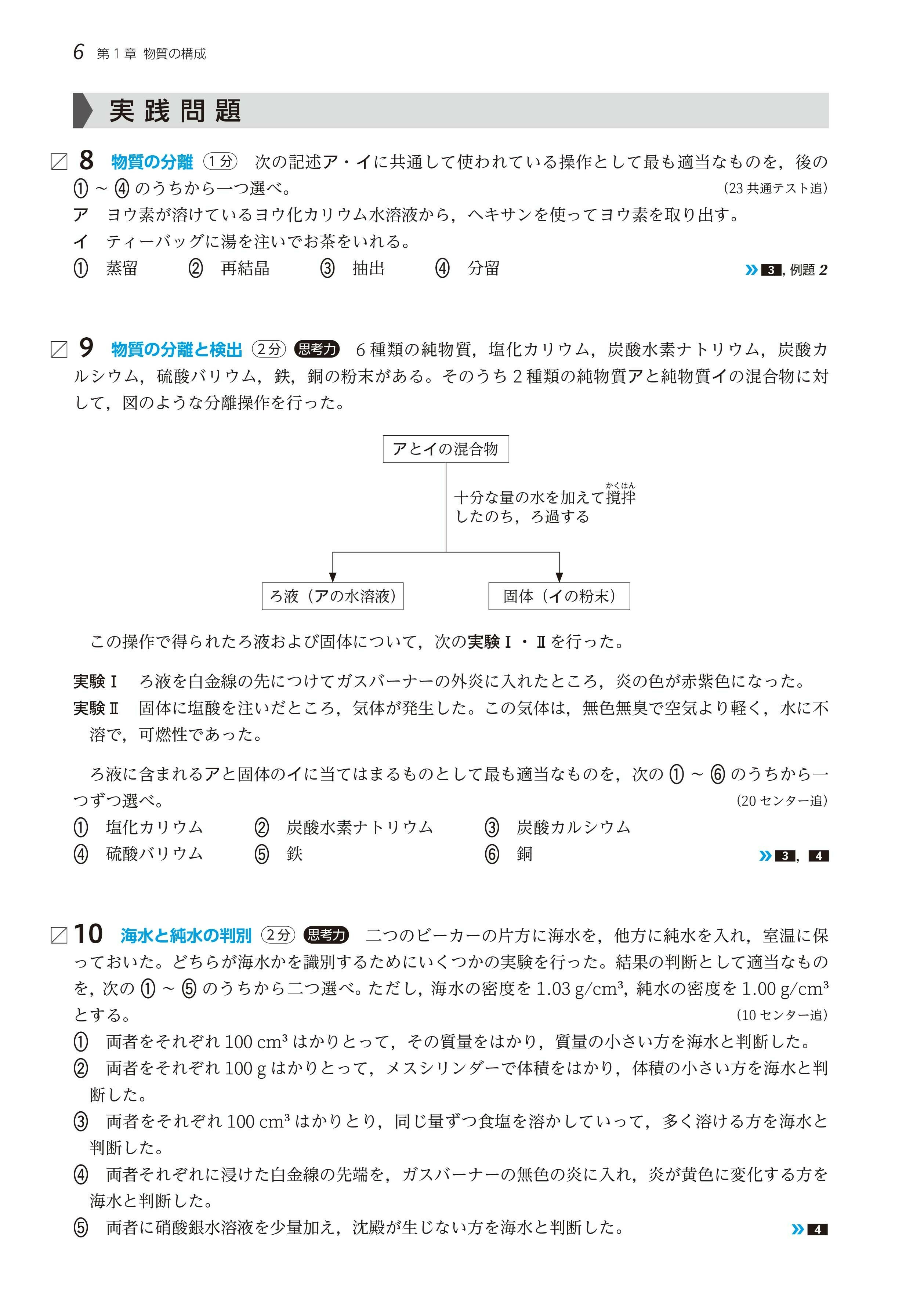 定番の実験について考察し,理解を深める問題特別対策「実験操作」