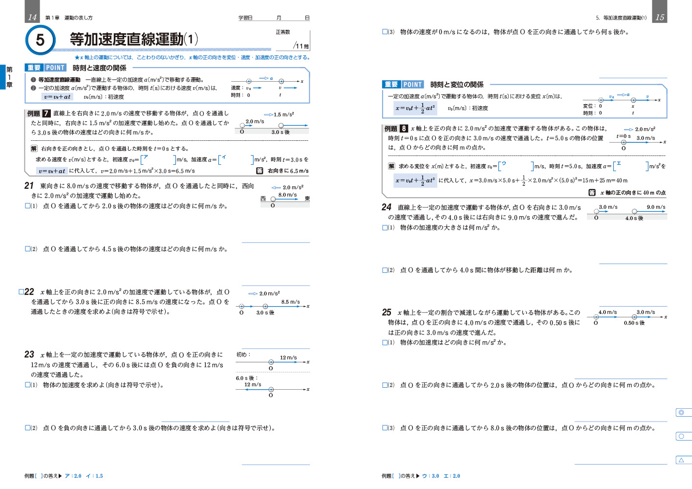 - 「物理基礎に必要な数学の知識」(巻頭)…数学の基礎知識の確認・基本問題の練習