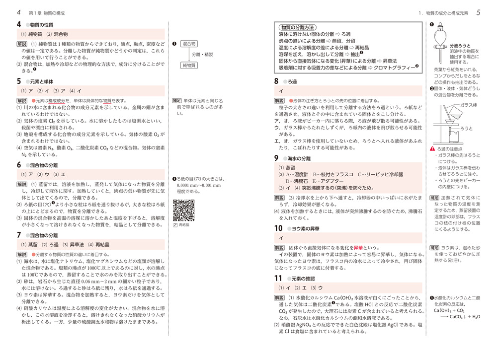 - 図表や一問一答形式の問題 で,中学理科(化学分野)の内容を復習できます。