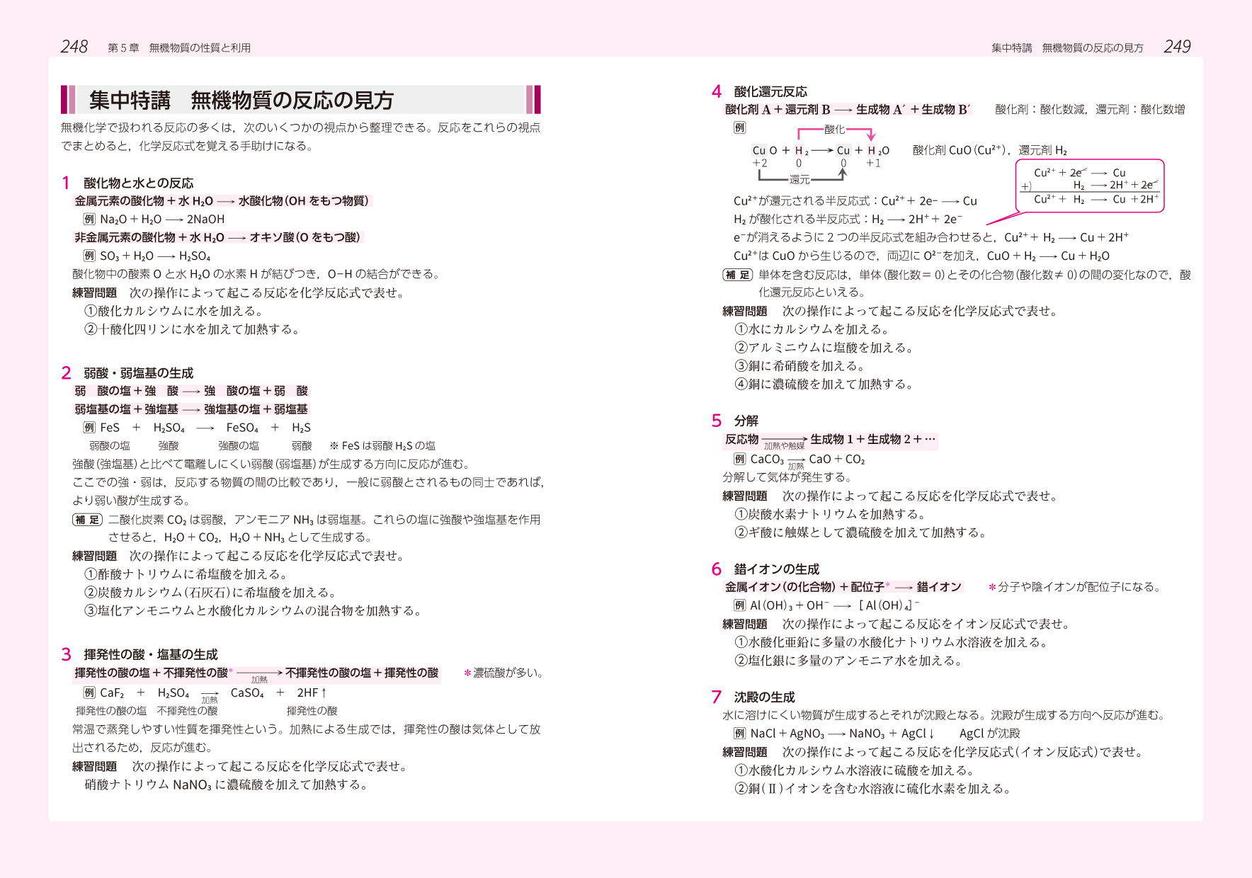 - p.248無機物質の反応の見方 さまざまな反応を7つの視点で整理。
