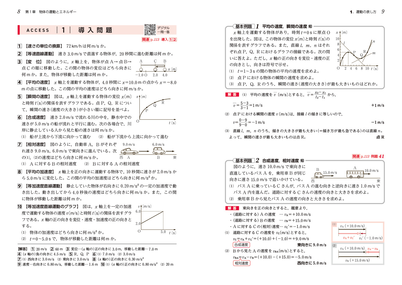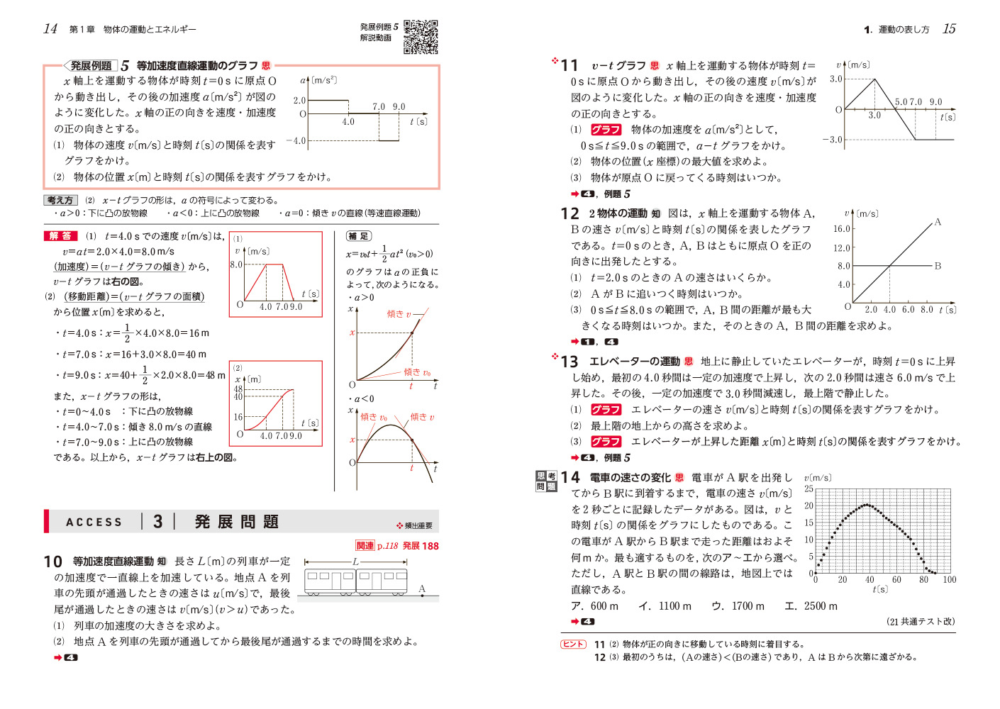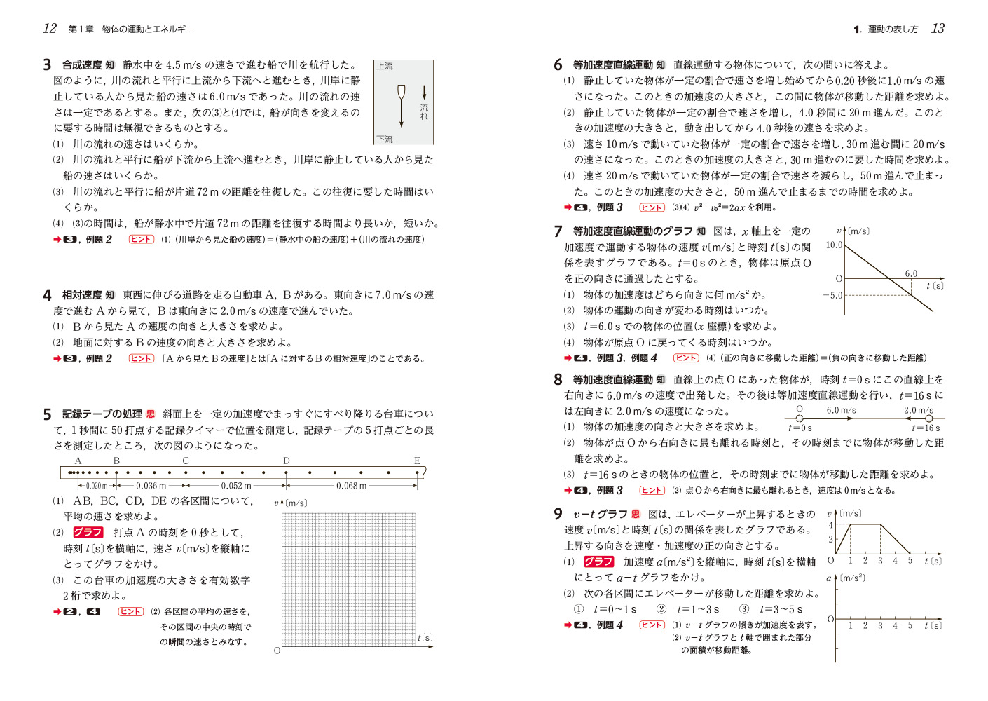 - 多彩な問題形式 …物理的なセンスを磨く 【定性】【公式を導く】 問題をはじめ, 【図の選択】【作図】【グラフ】【記述】 問題を掲載しています。計算問題以外の多面的なアプローチができます。