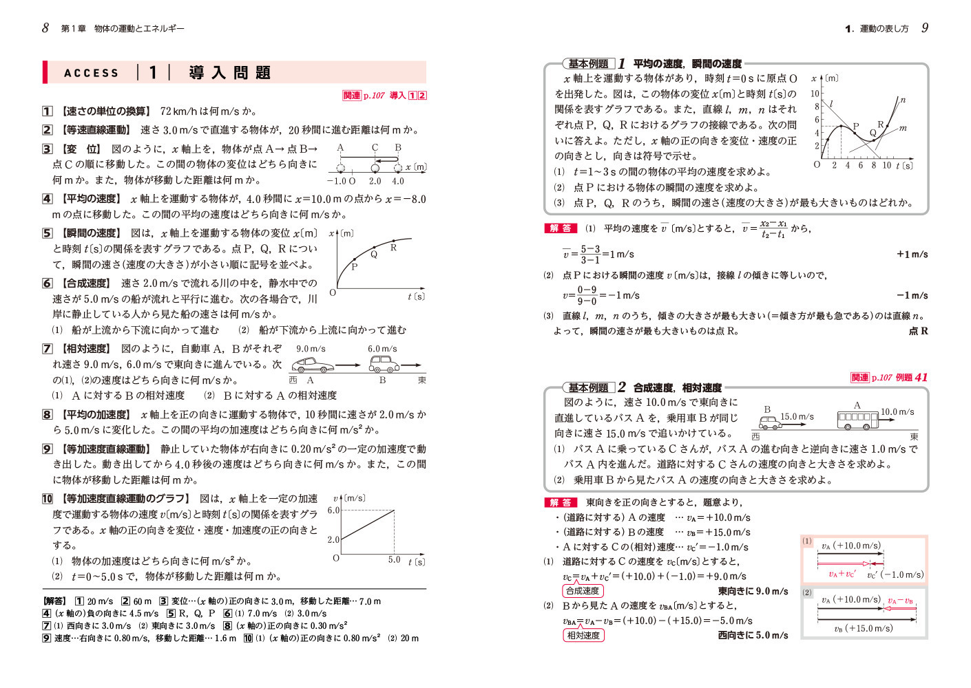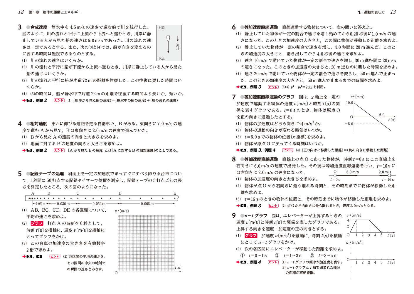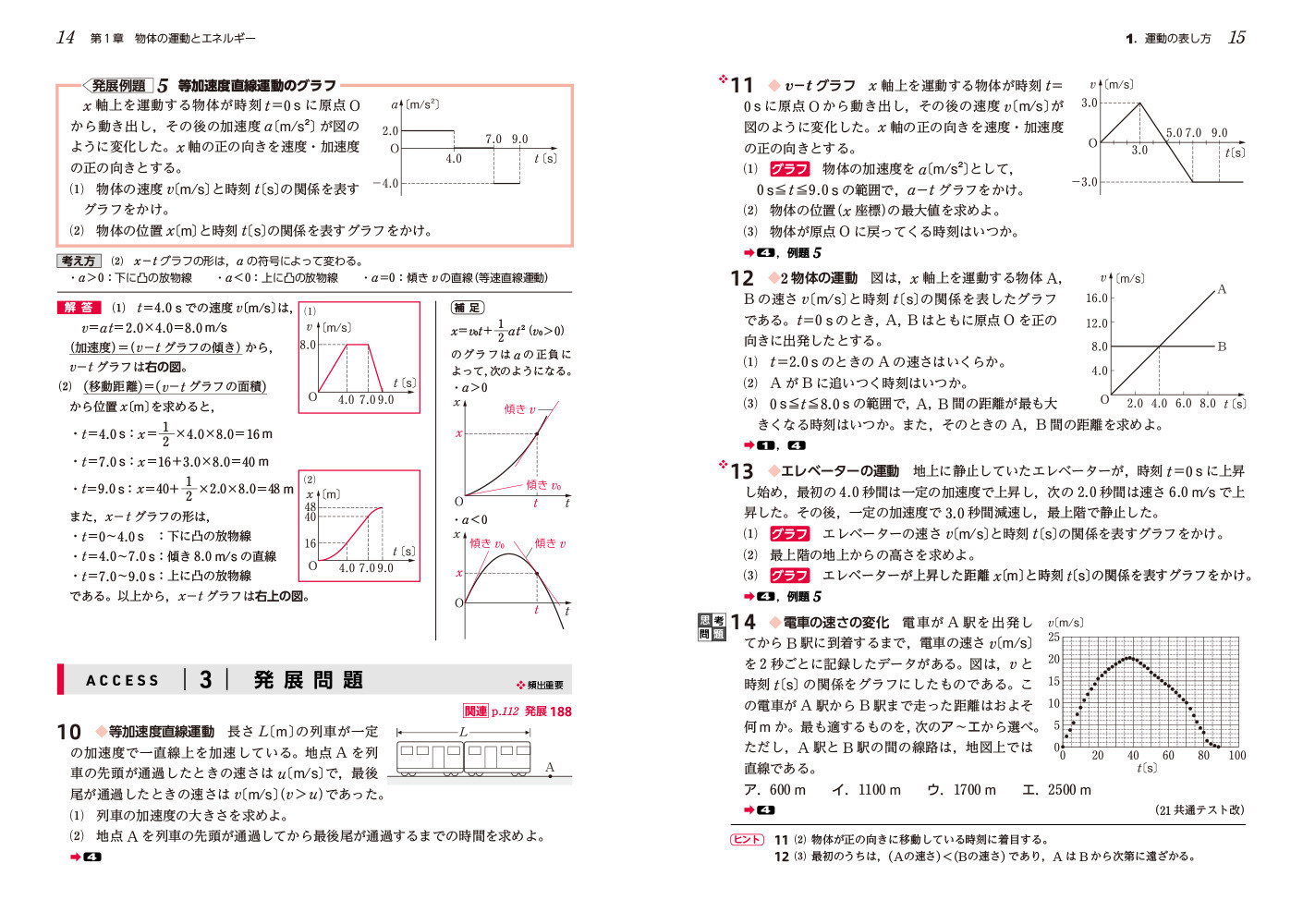 - 多彩な問題形式 …物理的なセンスを磨く 【定性】【公式を導く】 問題をはじめ, 【図の選択】【作図】【グラフ】【記述】 問題を掲載しています。計算問題以外の多面的なアプローチができます。